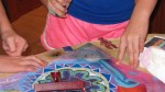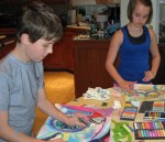 Knowing I would have them for the entire weekend, I resolved to find a way to pull them out of the cave and away from the wonders of Club Penguin enhanced by the stack of gift cards they received for Christmas this year. Strathmore is offering a series of online classes for 2012 – FREE. I decided to enroll in the Mixed Media workshop. After watching the videos, I knew this would be a stretch for me and would draw both kids like flies to honey. It’s a messy approach using just about everything but the kitchen sink. Zentangle is neat, requires few tools and supplies and is controlled in approach – that’s what appeals to me about it. Nevertheless, I gathered various supplies and announced to the kids we would be doing art on Saturday afternoon. What ensued was a messy, disorganized and thoroughly FUN afternoon for all of us. Each has a unique approach to the creative process and clear ideas of what they like and don’t like. This messy, anything goes approach was perfect for them – though I struggled mightily. The contrast in the three pieces reminds me a lot of my Zentangle classes. We used the same supplies and had the same instruction, yet each piece is unique. We all agreed to move forward with the entire workshop as a team of three and packed up our ugly vinyl tablecloth along with our supplies in preparation for next weeks lesson. Even better, Saturday was a day free of the cave and electronics. They never even missed it. Mission accomplished!