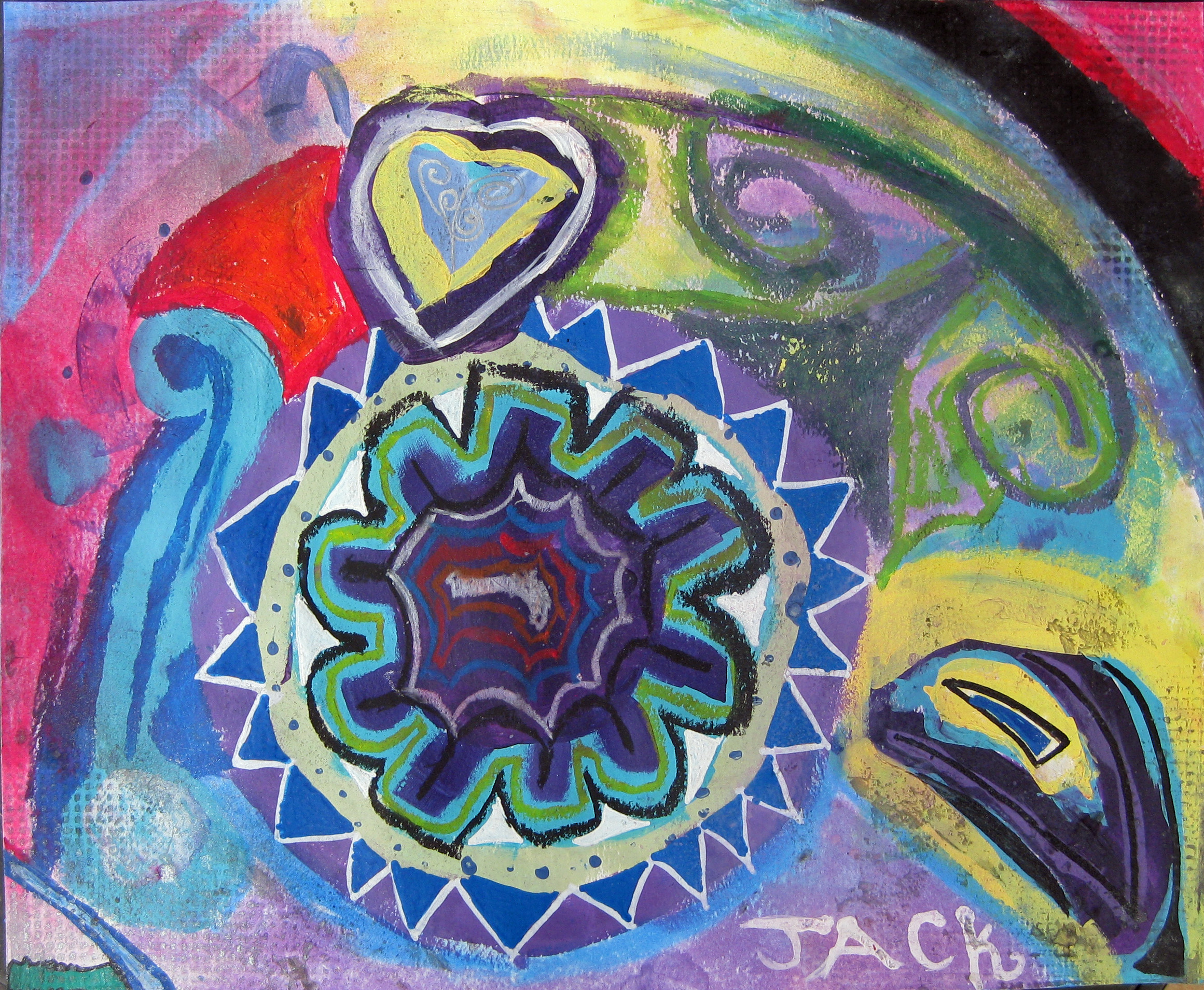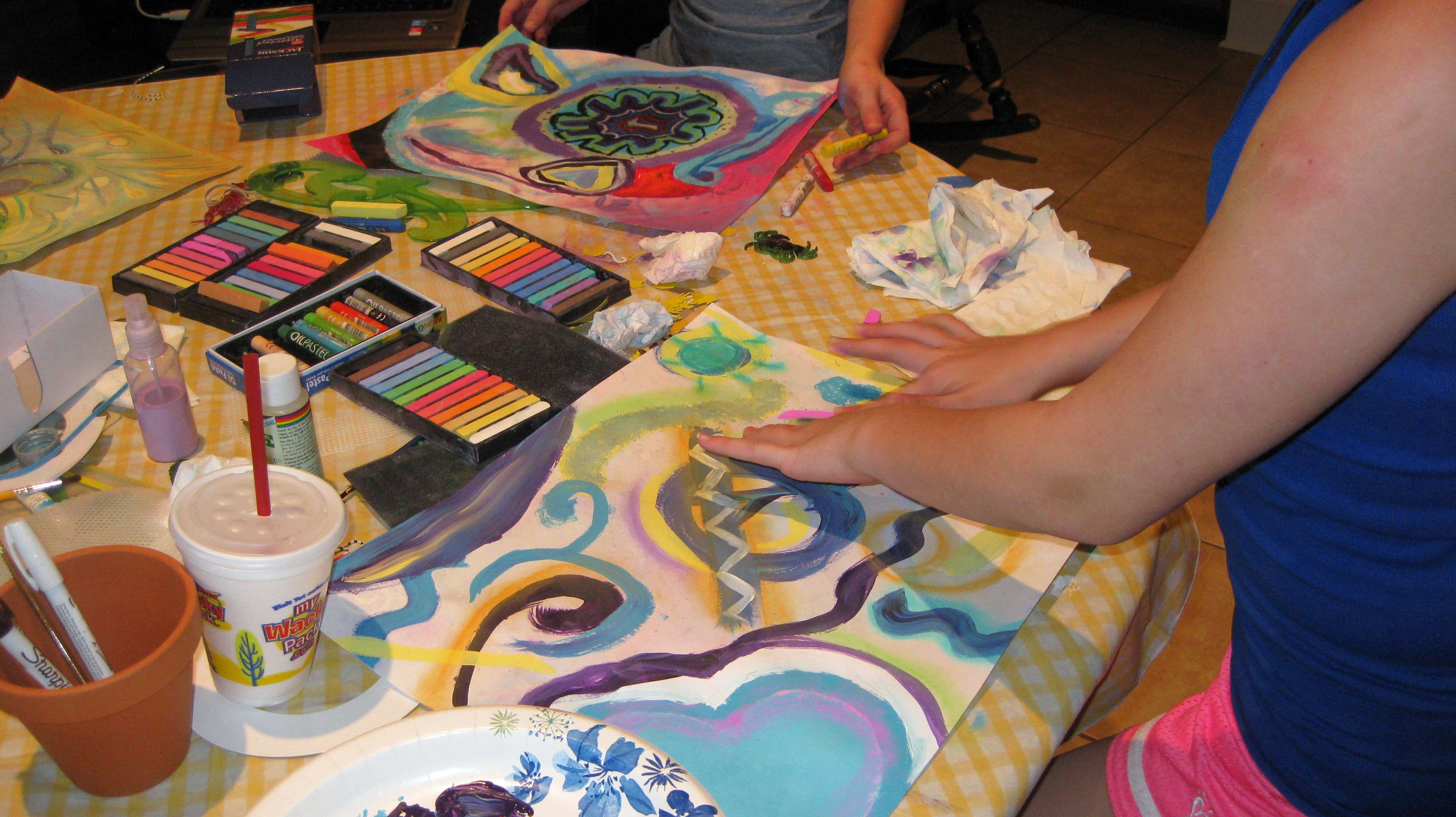 Knowing I would have them for the entire weekend, I resolved to find a way to pull them out of the cave and away from the wonders of Club Penguin enhanced by the stack of gift cards they received for Christmas this year. Strathmore is offering a series of online classes for 2012 – FREE. I decided to enroll in the Mixed Media workshop. After watching the videos, I knew this would be a stretch for me and would draw both kids like flies to honey. It’s a messy approach using just about everything but the kitchen sink. Zentangle is neat, requires few tools and supplies and is controlled in approach – that’s what appeals to me about it. Nevertheless, I gathered various supplies and announced to the kids we would be doing art on Saturday afternoon. What ensued was a messy, disorganized and thoroughly FUN afternoon for all of us. Each has a unique approach to the creative process and clear ideas of what they like and don’t like. This messy, anything goes approach was perfect for them – though I struggled mightily. The contrast in the three pieces reminds me a lot of my Zentangle classes. We used the same supplies and had the same instruction, yet each piece is unique. We all agreed to move forward with the entire workshop as a team of three and packed up our ugly vinyl tablecloth along with our supplies in preparation for next weeks lesson. Even better, Saturday was a day free of the cave and electronics. They never even missed it. Mission accomplished!