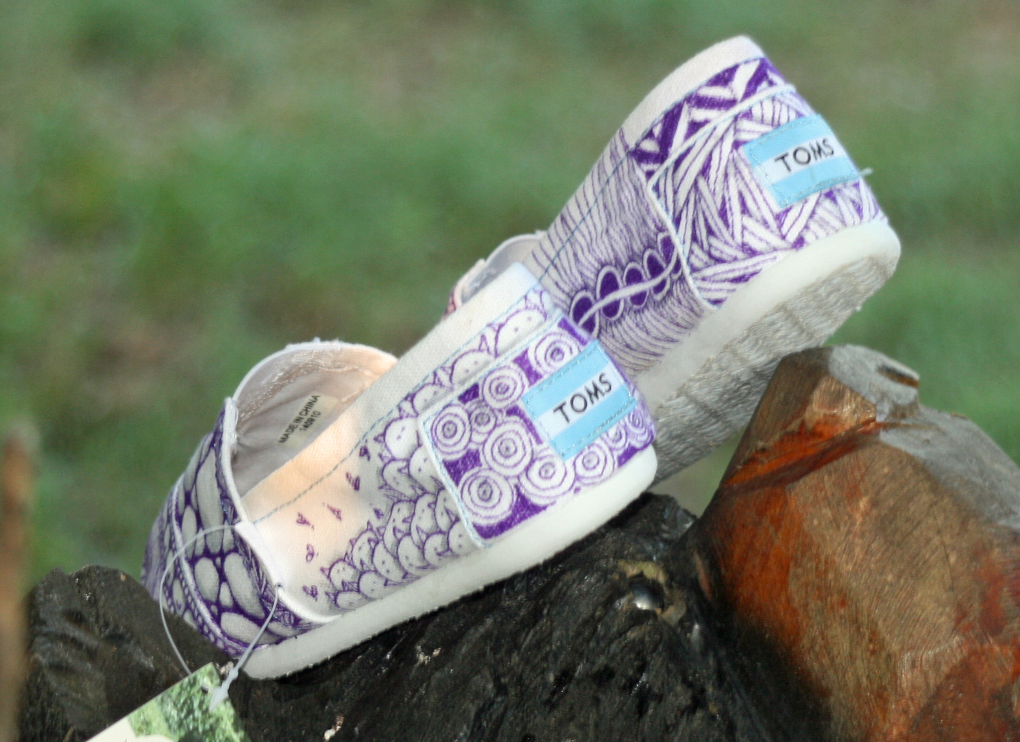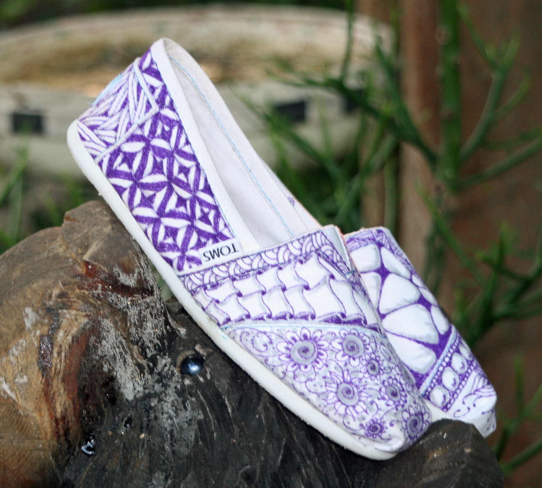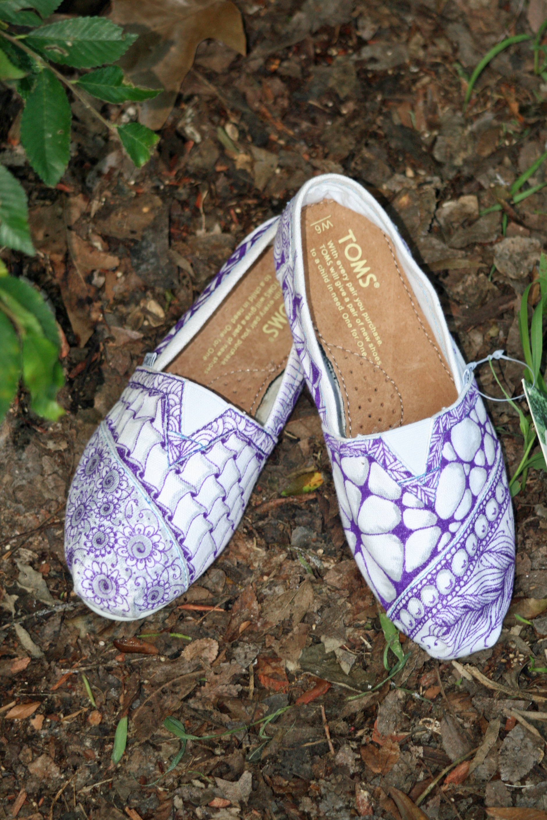 Months ago, I bought a pair of white Toms to tangle for a class. I got her size, since she has been pestering her Mom for a pair for quite some time. They were always intended to be her Easter gift. She has been eyeballing those shoes, lusting after them. She even advised me that purple ink would be the very best look for the tangles. I’m sure those Tangled Toms were uppermost in her mind when she ditched her 12-year old arrogance and became a believer again, at least for this year.