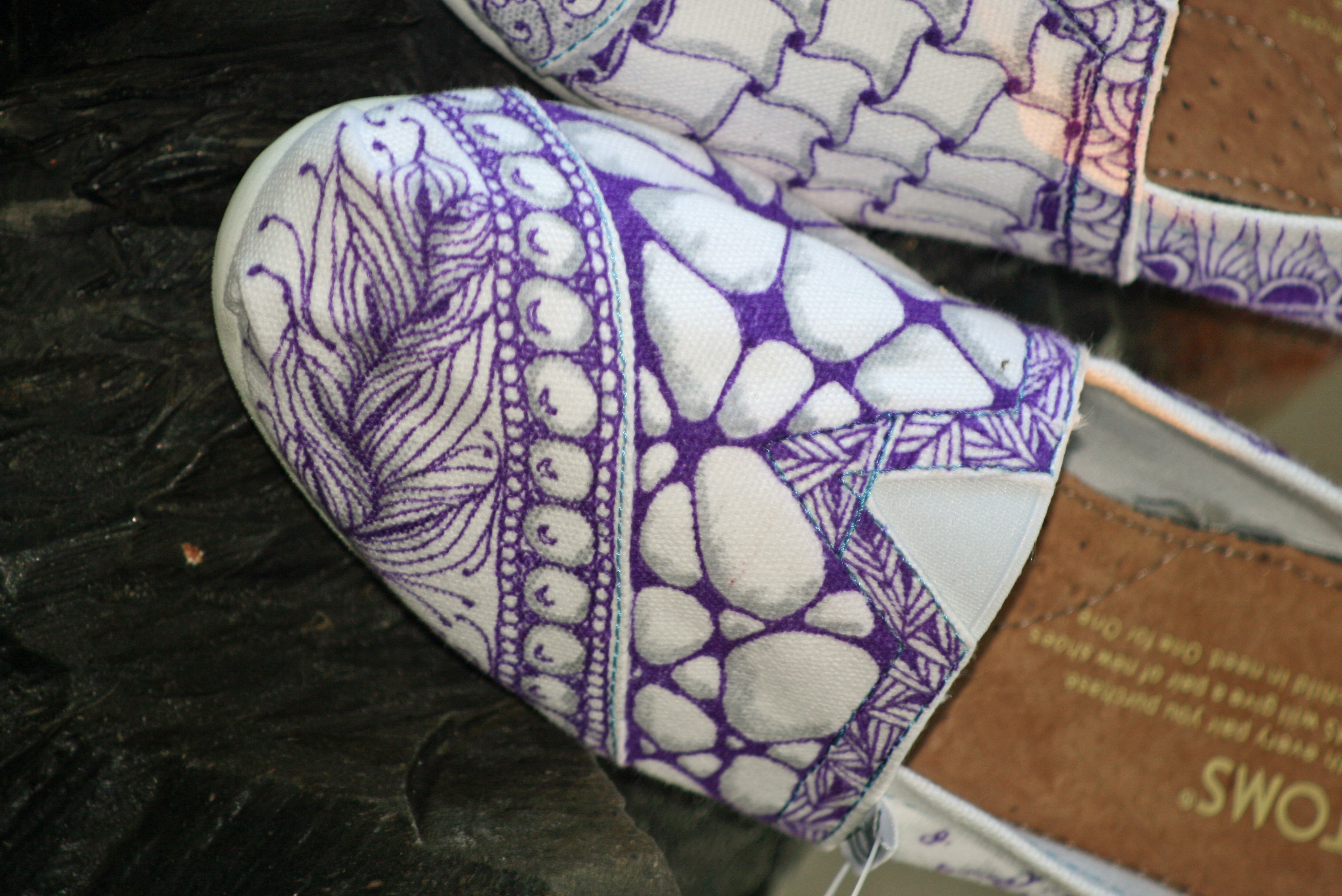 Those are really great shoes… I love the tangle patterns you picked. When I was twelve I’d buy cheap canvas shoes and decorate them with fabric paint. It was one of my favorite things to do. Maybe someday Maggie will tangle a pair of shoes for you, too!