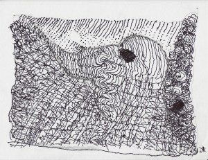 This is a page from my sketchbook when I was practicing the tangle “Mooka” Notice the difference in line quality when I changed from an very old to new pen.