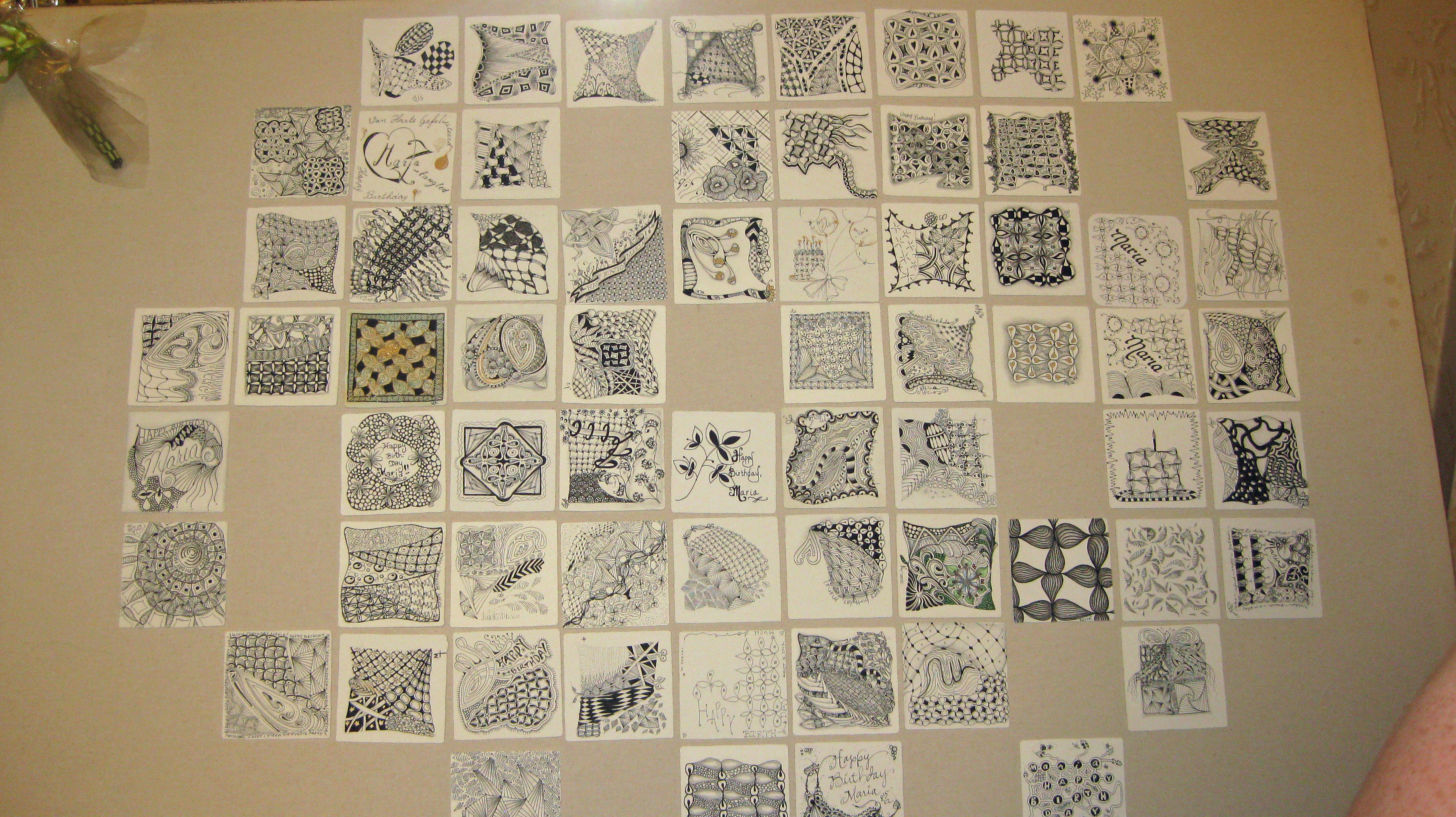I love all the tangles you did and the pictures of the tangles done for Maria for her birthday. I’m glad you are recovering so well from your surgery.