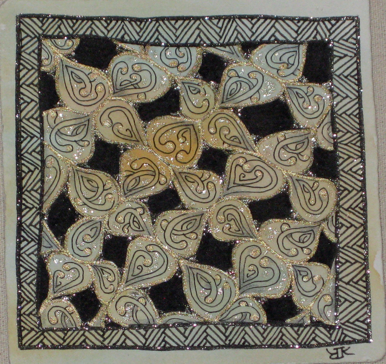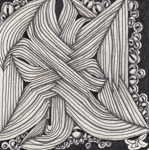 Now that I’m back home, I have been taking time to finish all those tiles started at the seminar. There were so many with the beginnings of tangles to learn techniques, tangle combinations a little outside the box and just half completed because we were moving on to something else. Maria taught a cute little frame that I will definitely use over and over. I’m showing the tile and a digital version with my wedding pic in it. You will likely recognize a “new” friend in these tiles. Be looking for the instructions in an upcoming Zentangle newsletter or if you can’t wait, find a CZT IX and take a class. While I didn’t take very many pictures, my tiles serve as my memories for this wonderful time in Providence. I hope you enjoy…